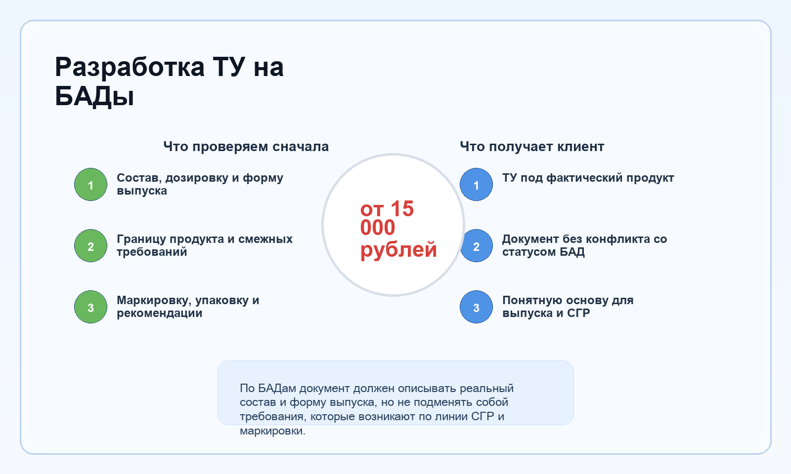 Какой результат получает заказчик после подготовки ТУ на БАДы.
